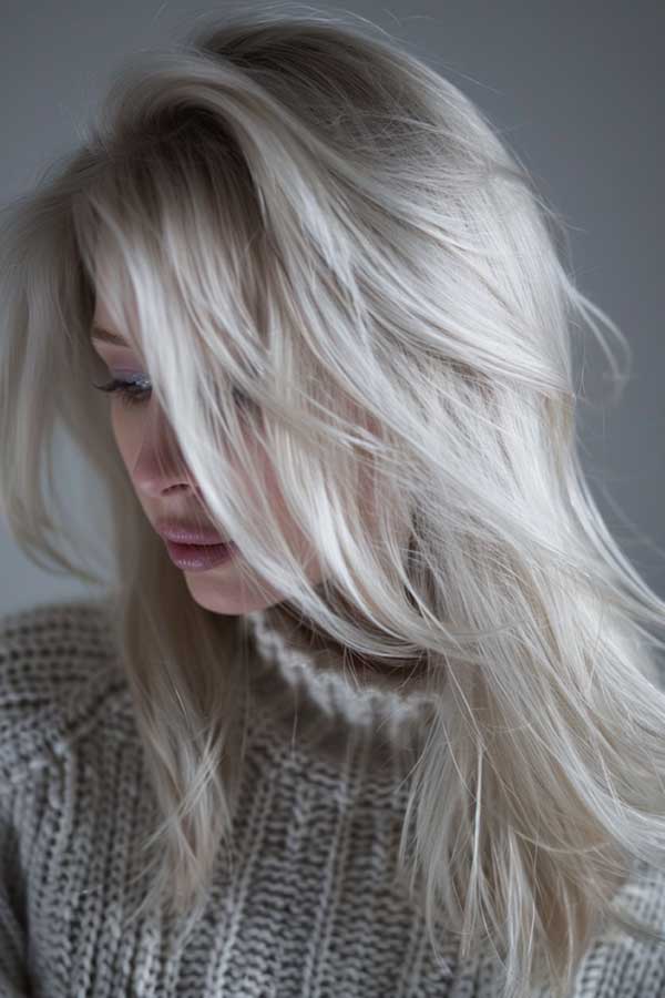 Blonde hair with silver highlights creates a striking, multidimensional look that blends warmth with cool elegance. The silver strands add a modern edgy twist to the blonde base, enhancing shine and contrast. Whether worn straight or wavy, the blend of blonde and silver offers a fresh luminous appearance with a high-fashion vibe.