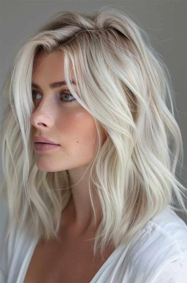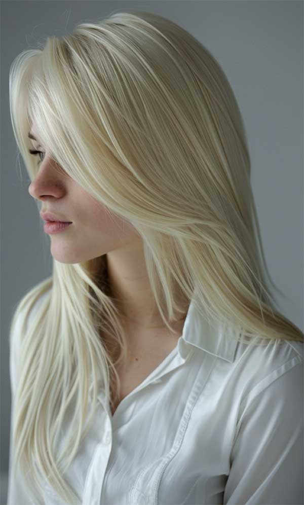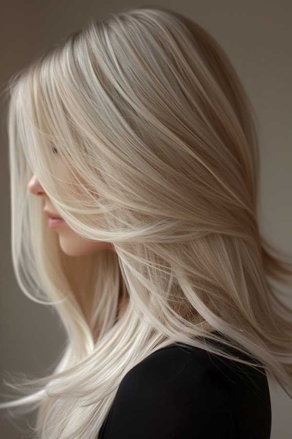 Icy blonde hair with platinum undertones is a cool frosty tones reflect light beautifully, giving hair a sleek glassy finish. Platinum undertones add depth and intensity, enhancing the icy effect. Regular toning and care keep the color crisp, making it a stunning choice for a modern and statement-making appearance.