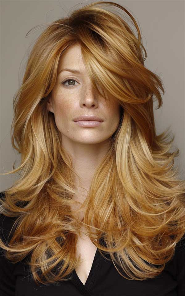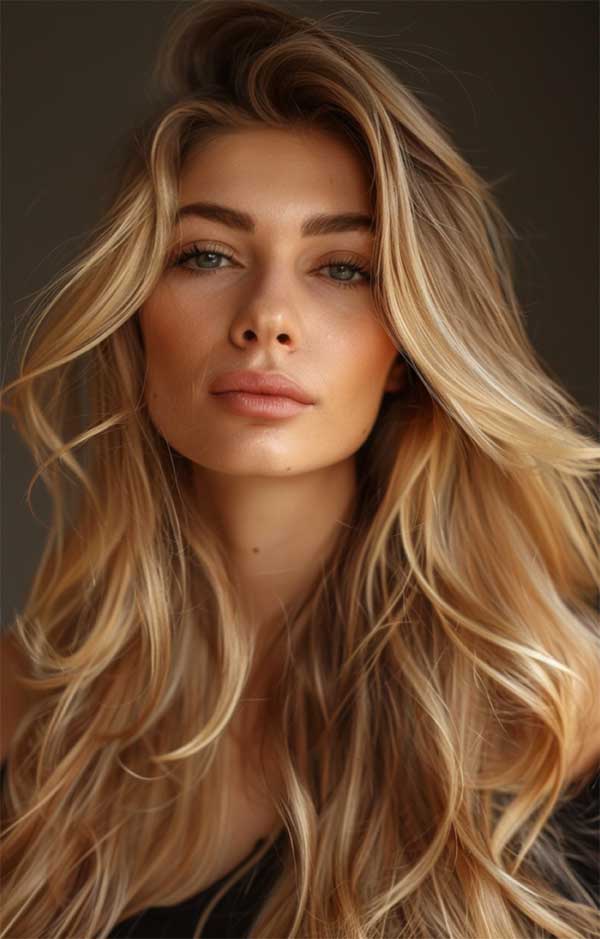 Honey blonde hair with face-framing highlights offers a warm radiant glow that brightens the complexion and enhances facial features. The golden tones create a sun-kissed effect, while the lighter strands around the face add dimension and softness. It’s a fresh look that brings warmth and light exactly where you want it around your face.
