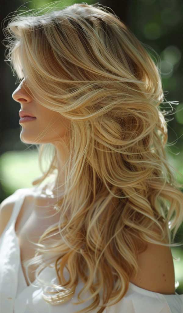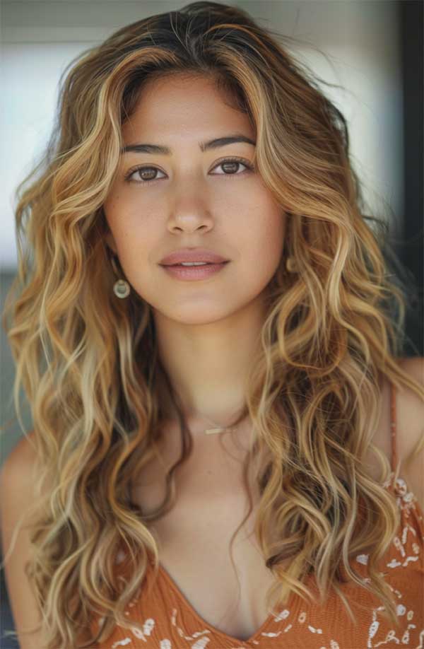 Honey blonde hair with soft curls radiates a rich golden tones bring depth and brightness, while the loose curls add bounce and texture for a naturally beautiful look. This flattering style suits many skin tones and transitions from day to night. Whether worn casually or dressed up, honey blonde curls offer a timeless blend of softness, shine and graceful movement.