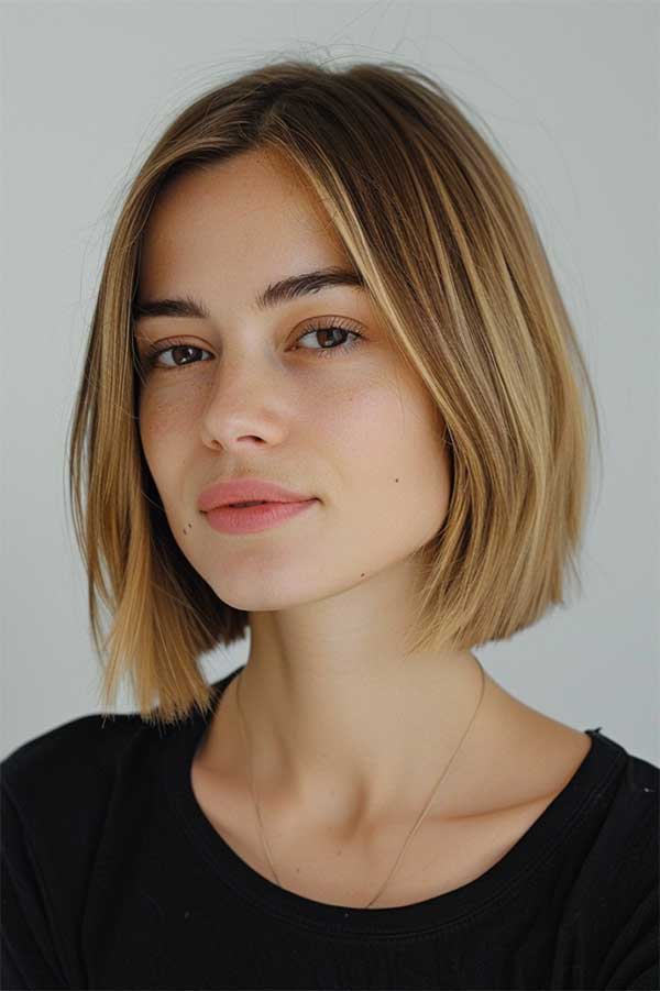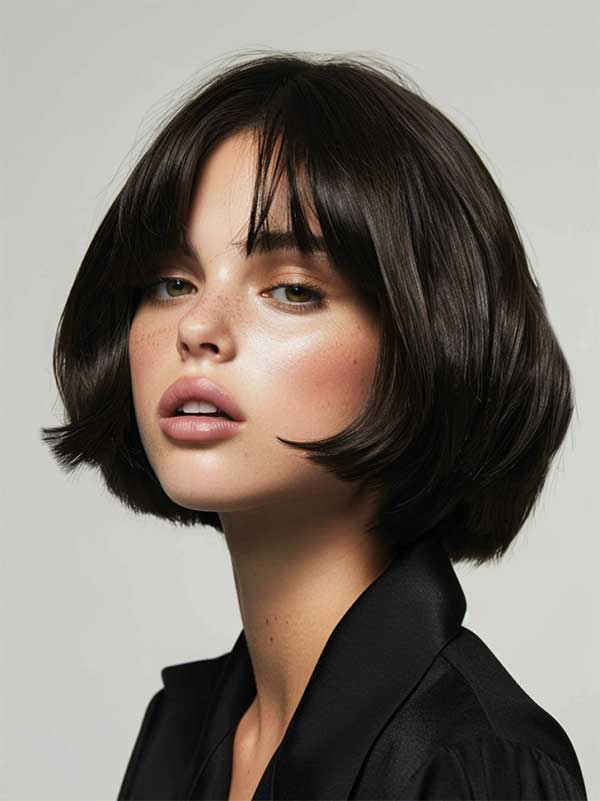 Sleek bouncy bob with blunt edges is a bold and polished style that combines clean lines with soft volume. The blunt cut adds sharpness and structure, while the bounce brings subtle movement for a fresh and modern finish. This look is perfect for straight hair, giving it a refined vibe.