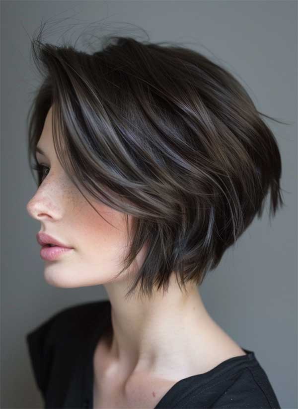 Stacked bouncy bob with subtle highlights is a modern, volumizing cut that adds depth and dimension to your hair. The stacked layers at the back create a lifted, rounded shape, while the soft highlights enhance the texture and movement. This style is perfect for those who want a fresh, lively look with minimal upkeep. The combination of bounce and color gives the bob a polished, multi-dimensional finish that’s effortlessly chic.