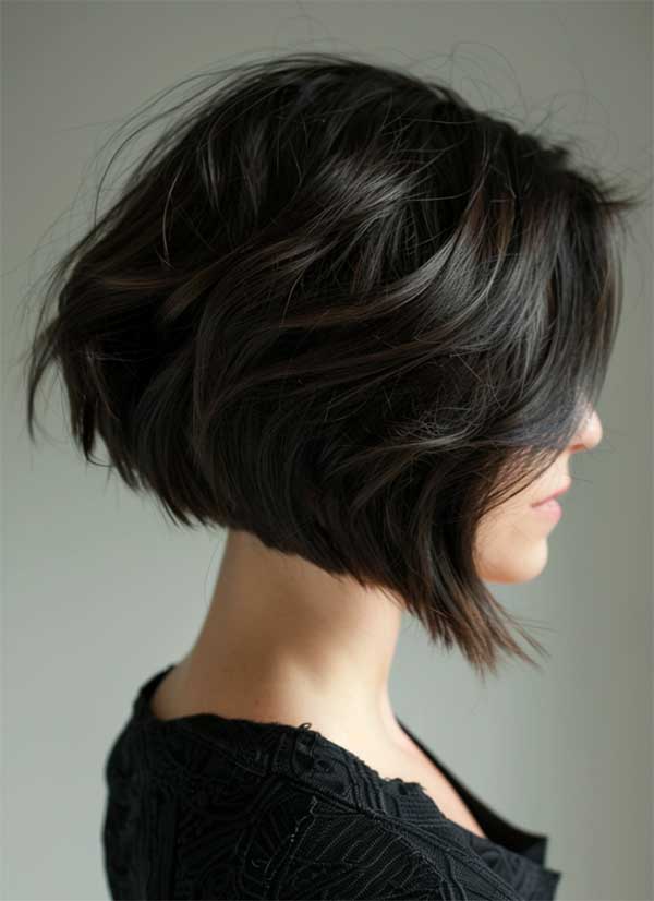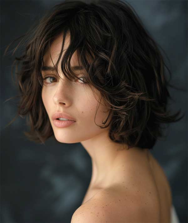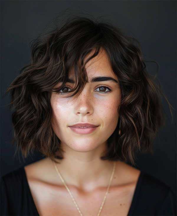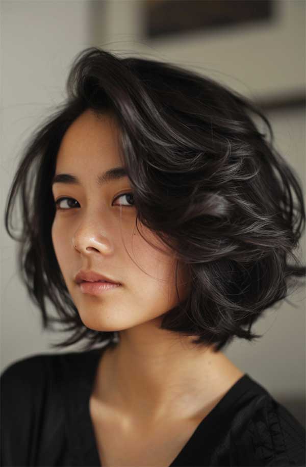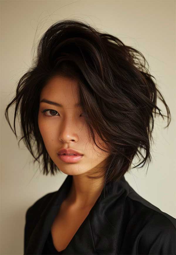 The bouncy asymmetrical bob with side-swept bangs is a stylish haircut that adds edge and movement. With one side slightly longer than the other, the asymmetry creates a modern face-framing shape. The side-swept bangs soften the look, adding elegance and balance. Combined with the bob’s natural bounce, this hairstyle offers volume, texture, and flair.
