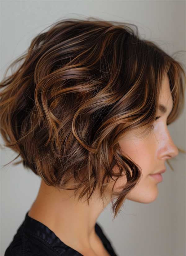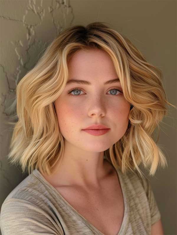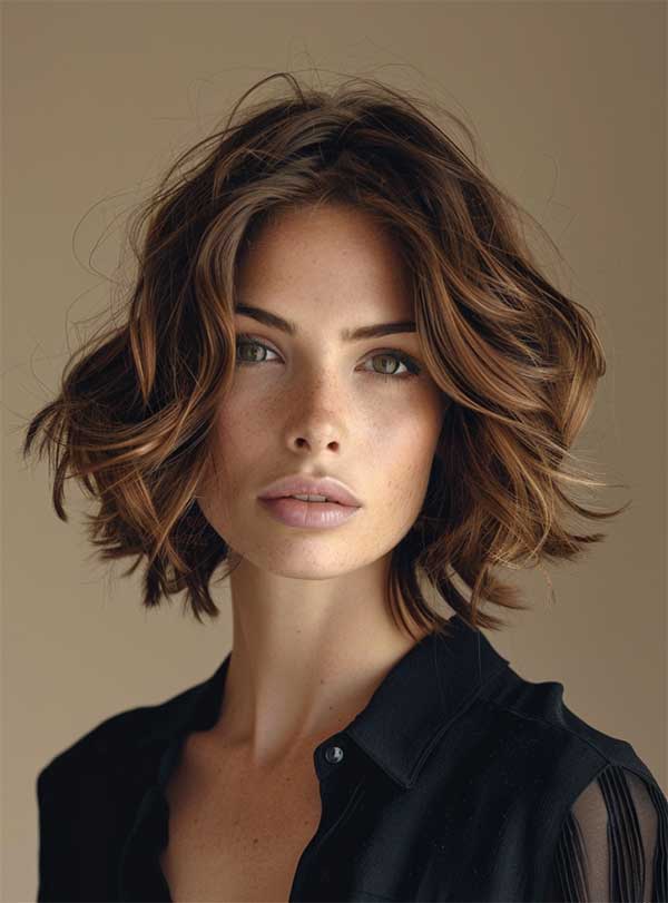 Wavy bouncy bob with highlights is a fresh, radiant style full of texture and dimension. Soft waves add movement and body, while subtle highlights enhance the layers, giving the hair a sun-kissed glow. This combination creates a vibrant, look that’s eye-catching.