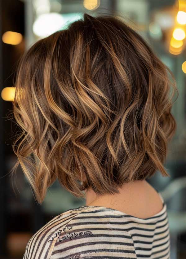 9. Wavy Bouncy Bob with Caramel Balayage Highlights