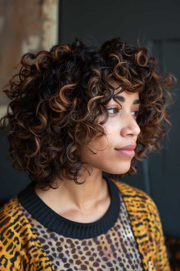 5. Curly Hair with Caramel Balayage Highlights