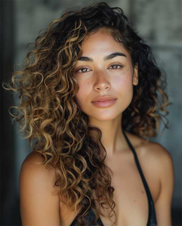 Caramel balayage highlights on curly hair add warmth, depth, and beautiful dimension to your natural texture. The soft golden tones enhance each curl, creating a radiant sun-kissed effect that catches the light and brings out the hair’s natural movement. Caramel balayage is a perfect match for curly hair with its seamless blend and low-maintenance appeal.