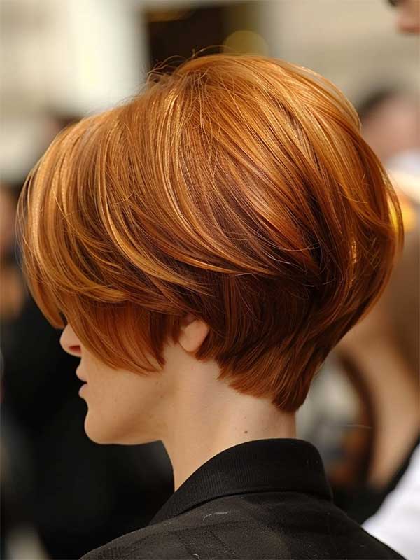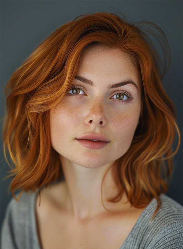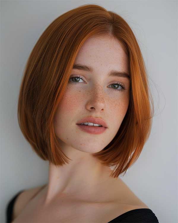 A side-parted copper bob is a chic and modern hairstyle that combines vibrant color with a sleek cut. The fiery copper tones add warmth and boldness, while the side part creates flattering asymmetry and frames the face beautifully. This look is perfect for those wanting a low-maintenance yet stylish option, offering both edge and sophistication.