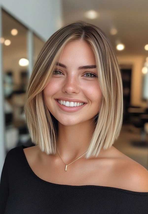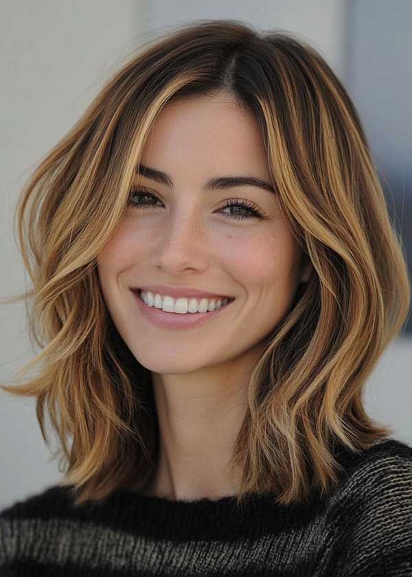 16. Long Bob with Face-Framing Highlights