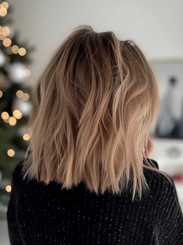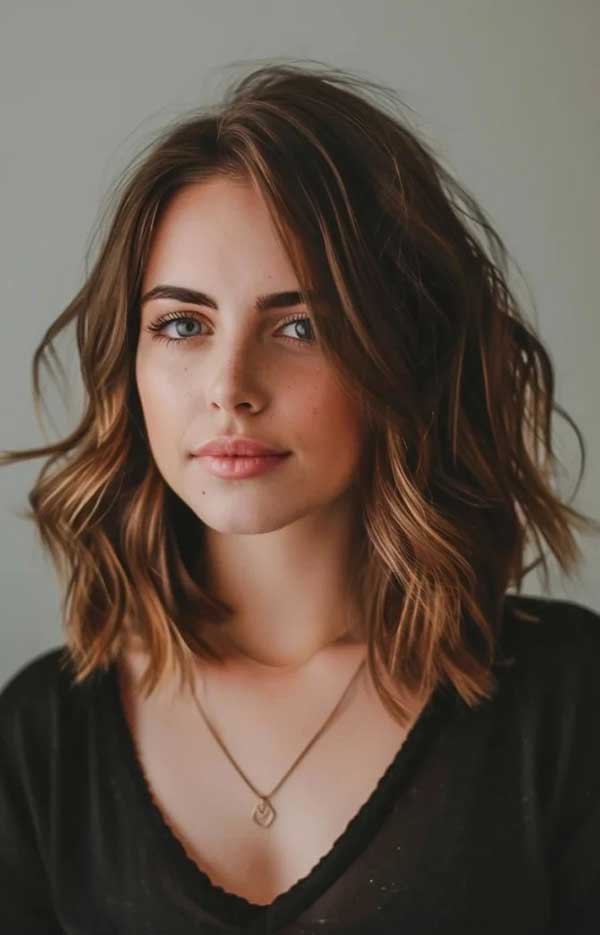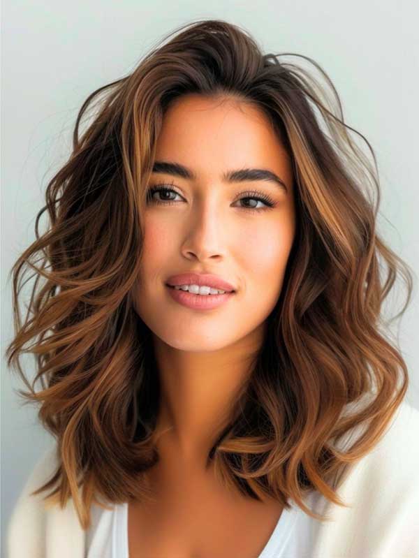 This hairstyle adds natural texture and volume while giving the hair a soft lived-in look. The tousled waves create movement without needing much styling which is perfect for casual days or dressed-up occasions.