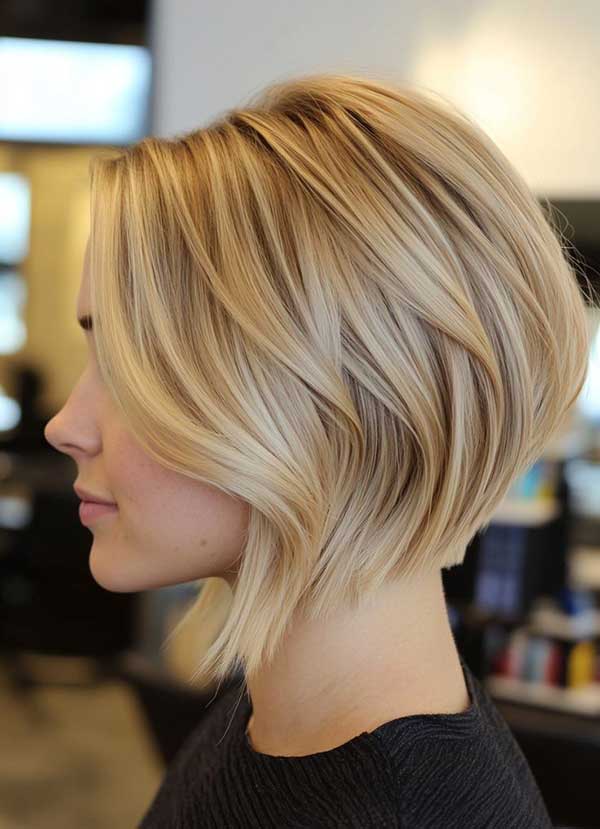 The angled lob with soft layers is a chic haircut that blends structure with movement. The soft layers add texture and volume while giving the style a light feel. This versatile cut works well with straight, wavy, or slightly curly hair which offers a polished look that’s easy to style and suits any occasion.