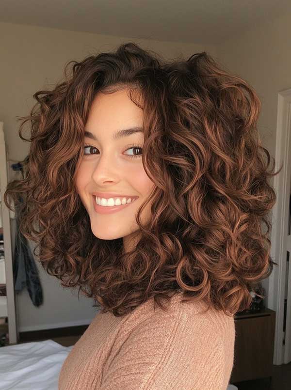 The curly shag haircut is a game-changer for embracing natural texture with style. Defined by layered curls and volume at the crown, this cut enhances bounce while preventing bulk. Its lived-in, carefree vibe adds an edgy flair to curly hair, making it ideal for a bold, effortless look. Pair it with curly bangs for extra personality and let your natural curls shine with this flattering, low-maintenance haircut.