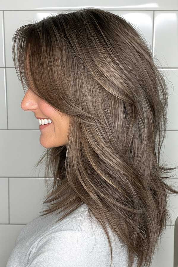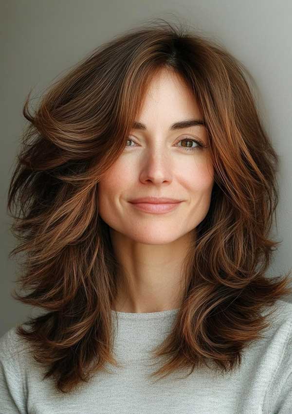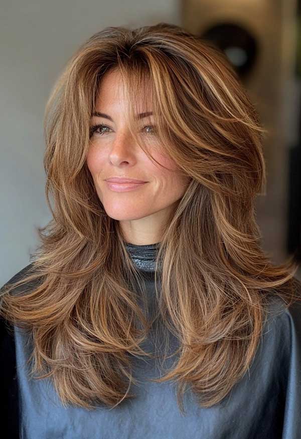 The long shag with face-framing layers is a stylish way to add movement and shape to lengthy locks. Featuring soft, cascading layers that highlight your facial features, this cut blends a retro vibe with modern appeal. It works beautifully with natural waves or straight hair which creates a breezy look. The layered texture reduces weight while adding volume while making it a perfect choice for those seeking a low-maintenance yet eye-catching style.