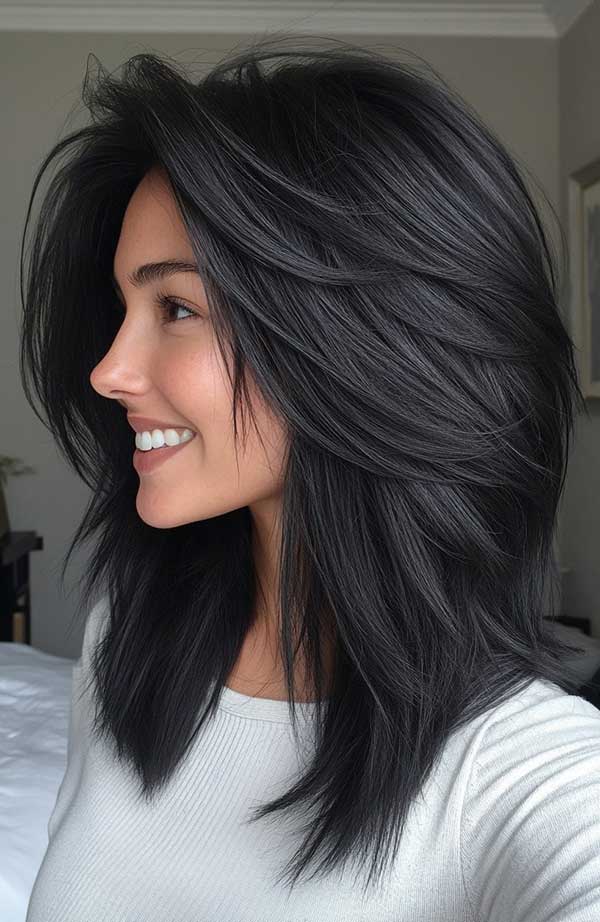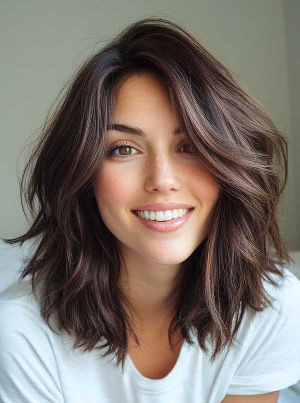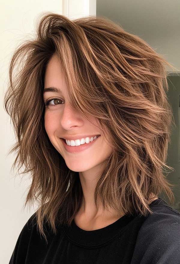 Its choppy layers add volume and movement while giving hair a naturally messy, beachy vibe. Ideal for medium-length hair, this cut flatters a range of face shapes and works well with straight, wavy, or slightly curly textures. Style it with a bit of sea salt spray or texturizer for that perfectly undone, carefree finish that screams cool without trying too hard.