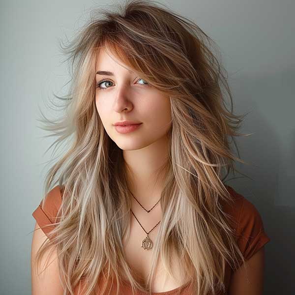 Layered wolf shag is a modern twist on the classic shag, featuring bold choppy layers and a tousled finish. It blends the wild texture of a wolf cut with the vintage appeal of a shag, creating effortless volume and movement. Ideal for all hair types, this style frames the face with soft fringe while keeping the ends wispy and free.