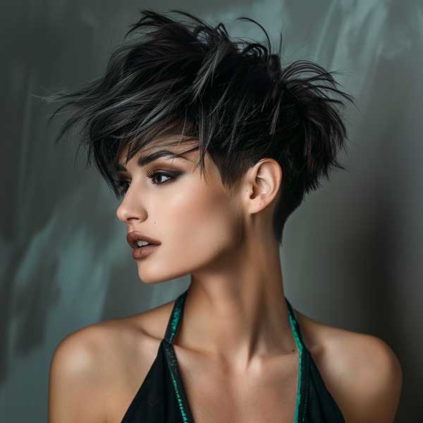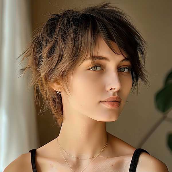 Short wolf pixie cut is a daring blend of pixie edge and wolf cut texture. With choppy layers, volume at the crown, and tapered sides, it offers a bold and tousled look that’s both modern and easy to style. This cut adds instant attitude, especially when paired with curtain or micro bangs.