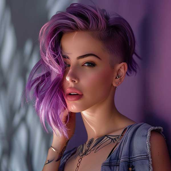 Wolf cut with lavender undertones adds a vibrant twist to the classic edgy hairstyle. Its layered and textured shape pairs perfectly with subtle or bold lavender hues peeking through the hair, creating depth and a playful artistic vibe. This fusion of wild cuts and soft pastel colors offers a modern and trendy look that stands out.